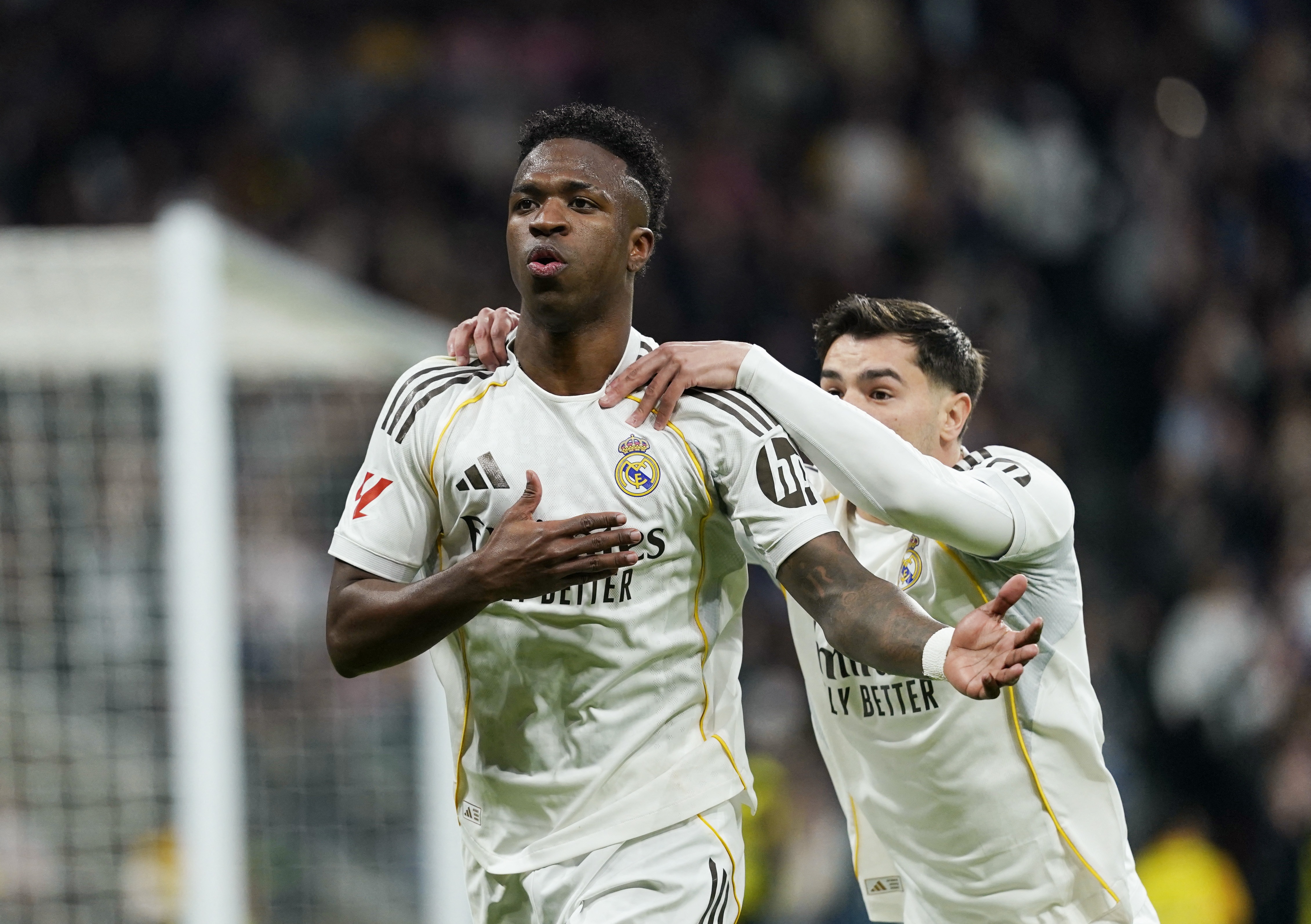 2月26日讯 在欧冠淘汰赛附加赛次回合皇马对阵本菲卡的比赛中,维尼修斯破门。